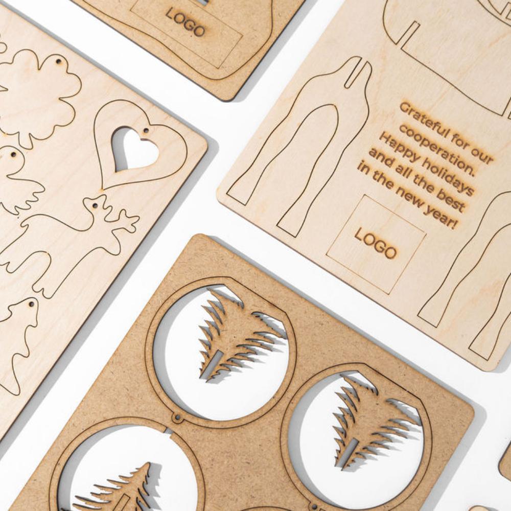 Sustainable wooden greeting cards for corporate events and branding