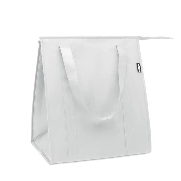 Discover the ideal promotional item for your next event or marketing campaign. This eco-friendly cooler bag, crafted from recycled RPET non-woven material weighing 80gr/m², offers reliable insulation with an inner aluminum foil lining to keep contents cool. With a spacious 25L capacity and a secure top zipper for the main compartment, it's perfect for carrying beverages, snacks, or essentials.