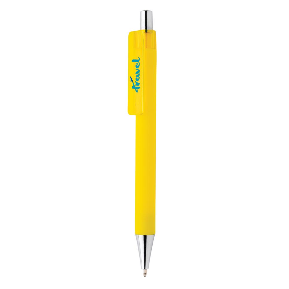Elevate your brand with the X8 smooth touch pen, a sophisticated RCS-certified choice from the X pen family. Its sleek design features chrome tip and plunger accents paired with a premium smooth touch finish for exceptional writing comfort and a professional feel.