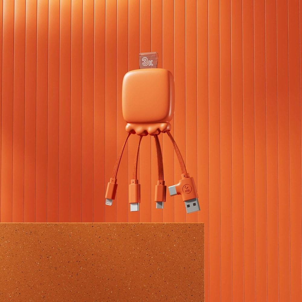 Elevate your brand with the Xoopar bio charging cable & powerbank Octopus - 3.000 mAh, a compact pocket-sized essential for on-the-go charging. Featuring a versatile multi-charging cable with dual inputs (USB-C, Lightning, Micro USB, USB) and an integrated 3000mAh powerbank, it delivers reliable power boosts for smartphones and devices anytime, anywhere.