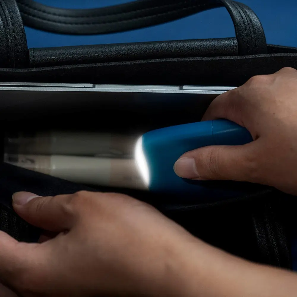 - Innovative smart touch LED light that illuminates contents in bags or dark spaces.