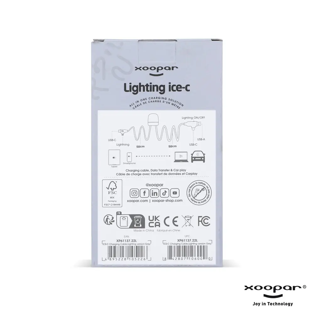 Elevate your promotional game with the Xoopar Lighting Ice-C Charging Cable, a customizable tech essential for branding. This versatile 2x50cm cable offers dual input/output for seamless connectivity, including CarPlay support, and delivers fast charging up to 27W to keep devices powered efficiently.