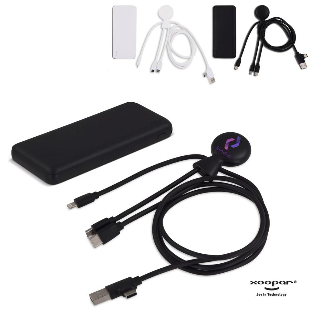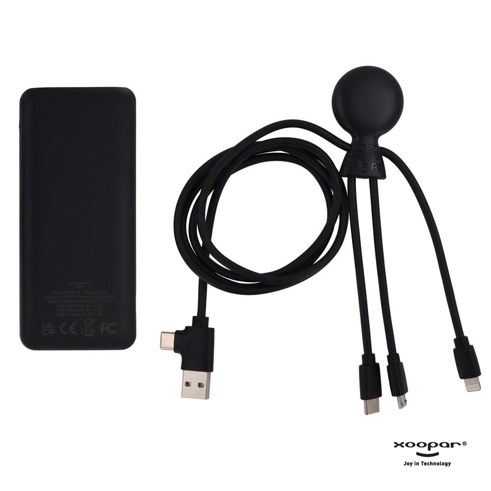 Elevate your brand with the Xoopar sustainable charging set, featuring a 7000mAh power bank and Mr. Bio long multi-cable adapter, both crafted from recycled plastic for eco-conscious promotion.