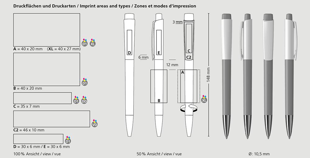 Crafted for reliability, the brass nickel plated tip ensures smooth, consistent writing, powered by Silktech refills with recycled polypropylene tubes for an eco-conscious touch. Optional refills like Silktech XL, Multifill P, or Multi-Gel provide versatility for your branding needs.