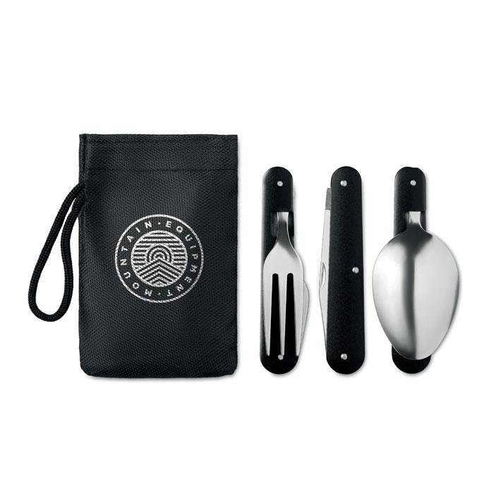 Découvrez nos couverts de camping multifonctions en acier inoxydable avec manche en aluminium. Cette combinaison ingénieuse de cuillère, fourchette et couteau est parfaite pour les aventures en plein air. Présentée dans une boîte cartonnée pratique, elle est idéale pour les entreprises, organisateurs d'événements et responsables marketing.