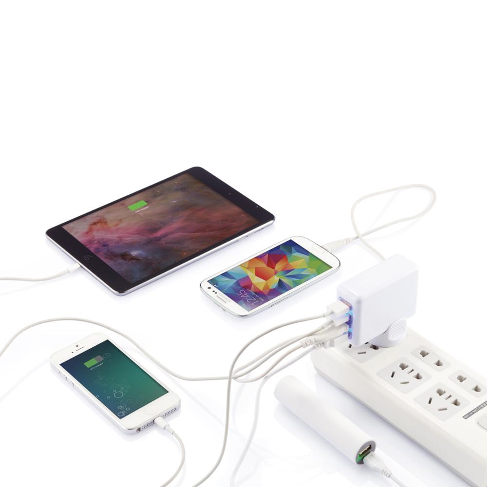 Découvrez notre adaptateur de voyage avec 4 ports USB, l'accessoire indispensable pour les professionnels en déplacement. Compact et portable, il recharge simultanément jusqu'à quatre appareils grâce à sa sortie puissante, idéal pour smartphones, tablettes et autres gadgets lors de voyages d'affaires ou d'événements.
