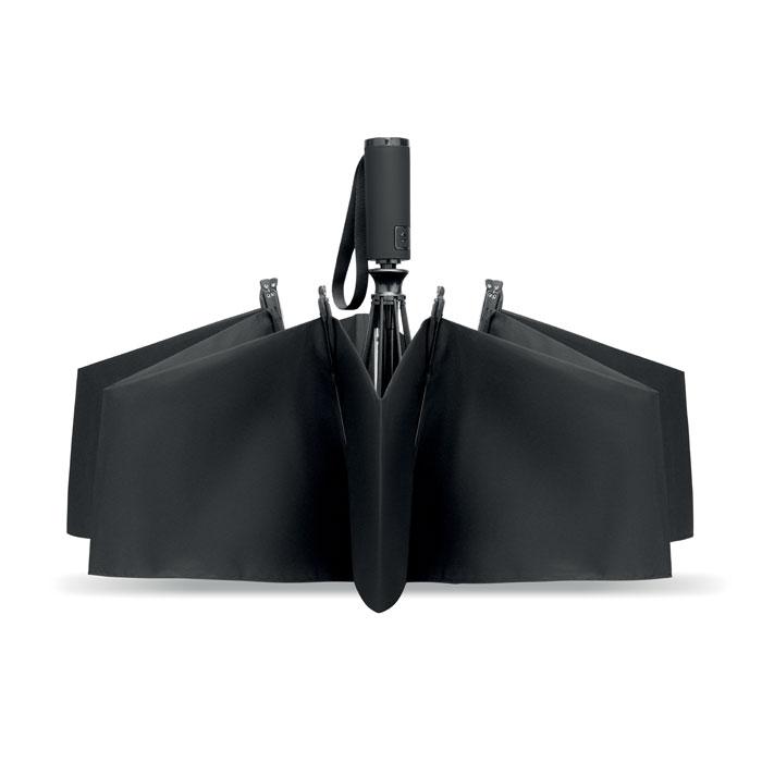 Ouverture et fermeture automatiques pour une utilisation fluide et rapide, avec une poignée ergonomique en ABS effet caoutchouc. Résistant aux vents violents, ce modèle 3 plis protège efficacement vos clients et partenaires, tout en offrant une surface généreuse pour une personnalisation logo impactante.