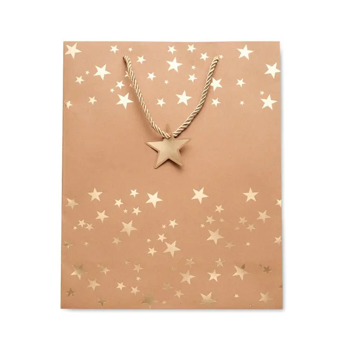 Découvrez l'élégant sac cadeau ARKLE en papier kraft recyclé, orné de motifs saisonniers charmants. Fabriqué en papier de 250 gr/m², certifié FSC® RECYCLED, il offre une solution d'emballage durable et festif pour vos cadeaux d'entreprise.