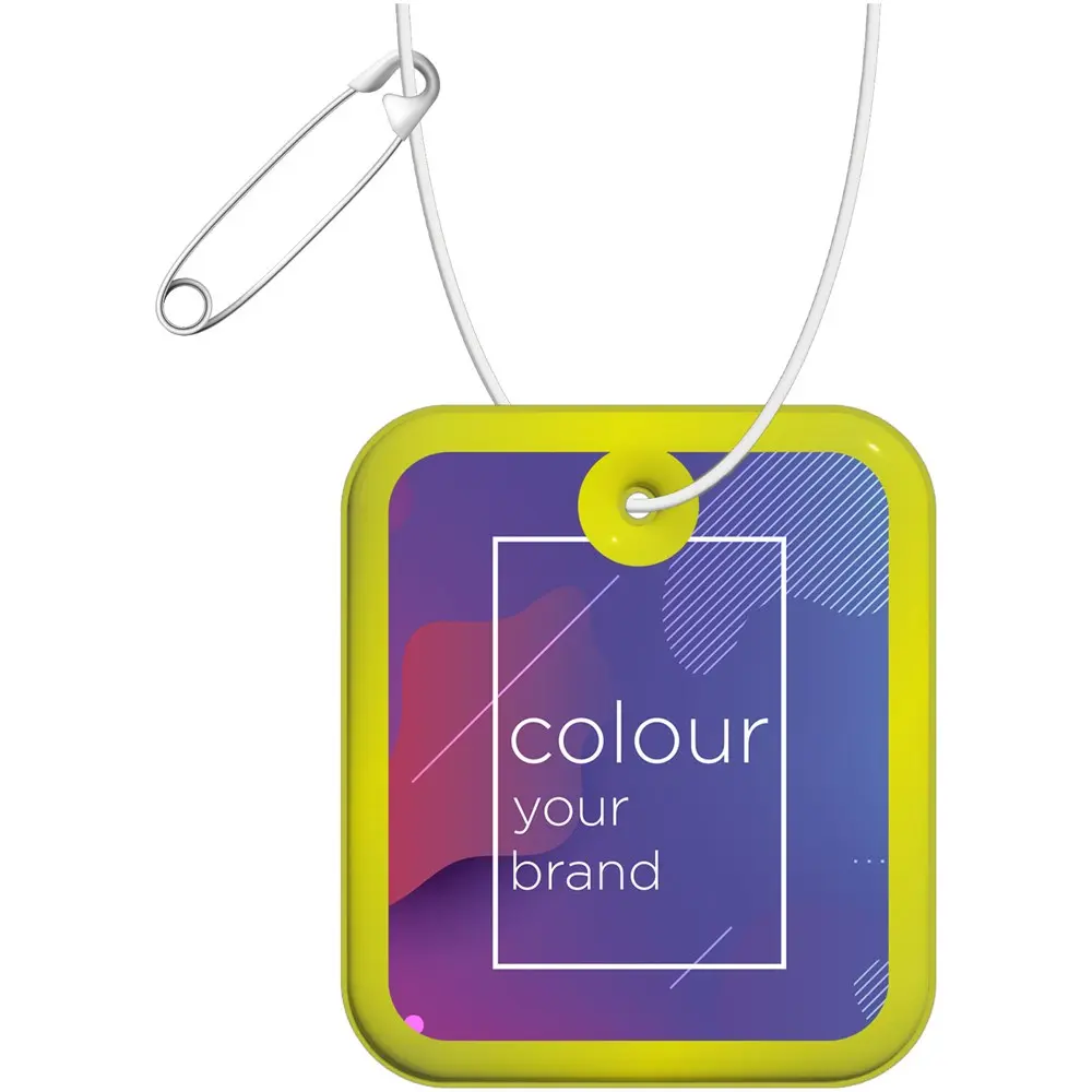 Certifiée CE selon la norme EN 13356:2001 Type 1, elle utilise un film réfléchissant souple RFX™ en PVC sans phtalates ou en TPU durable. Testée conforme REACH SVHC, sans substances préoccupantes. Fabriquée en Europe, cette attache de 4,3 x 5 cm en PVC offre une personnalisation optimale pour des cadeaux d'entreprise impactants, renforçant l'image de votre société auprès de vos clients.