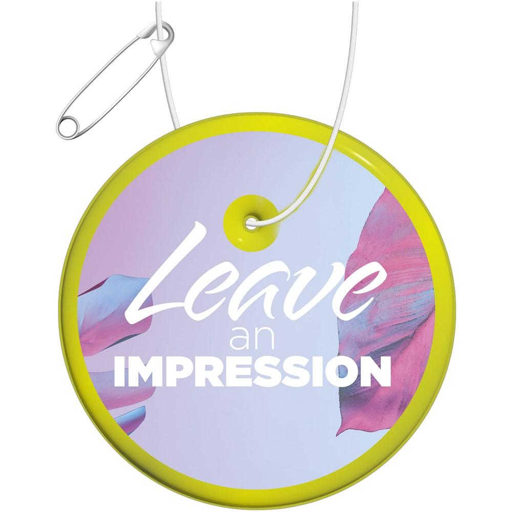 Fixez cette attache réfléchissante ronde H-09 RFX™ aux vêtements, sacs ou accessoires d'extérieur pour booster la visibilité de vos destinataires dans l'obscurité. Personnalisée avec votre logo, elle transforme la sécurité routière en un atout branding puissant, idéale pour les events, campagnes marketing ou cadeaux promotionnels en grande quantité.