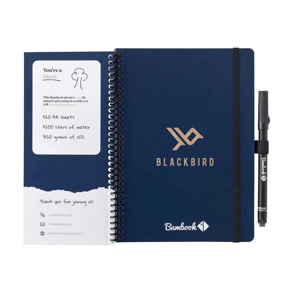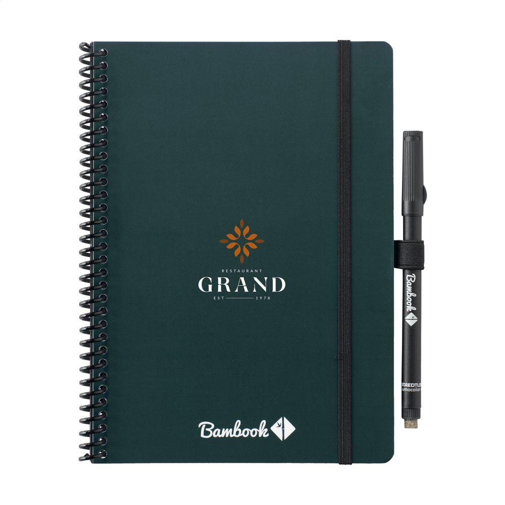 Le Cahier effaçable Bambook Classic Original A5 est l'outil idéal pour vos campagnes marketing et événements. Sa couverture robuste en carton certifié FSC, ornée d'un motif bambou subtil, protège 20 feuilles (40 pages) de papier effaçable à grille pointillée. Écrivez avec le marqueur fourni, scannez vos notes via l'app Bambook et effacez d'un simple chiffon humide pour une réutilisation infinie.