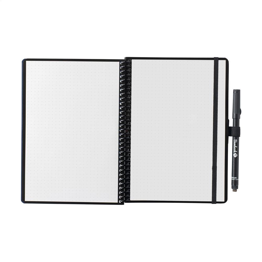 Découvrez ce cahier effaçable au format A5, idéal pour les professionnels du marketing et les organisateurs d'événements. Avec sa couverture solide en carton certifié FSC ornée d'un motif bambou subtil, il offre 20 feuilles (40 pages) de papier effaçable à grille à points. Écrivez avec le marqueur spécial fourni, scannez vos notes via l'application dédiée et effacez-les d'un simple chiffon humide pour une réutilisation infinie.