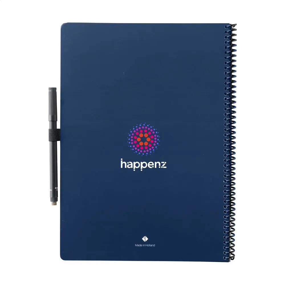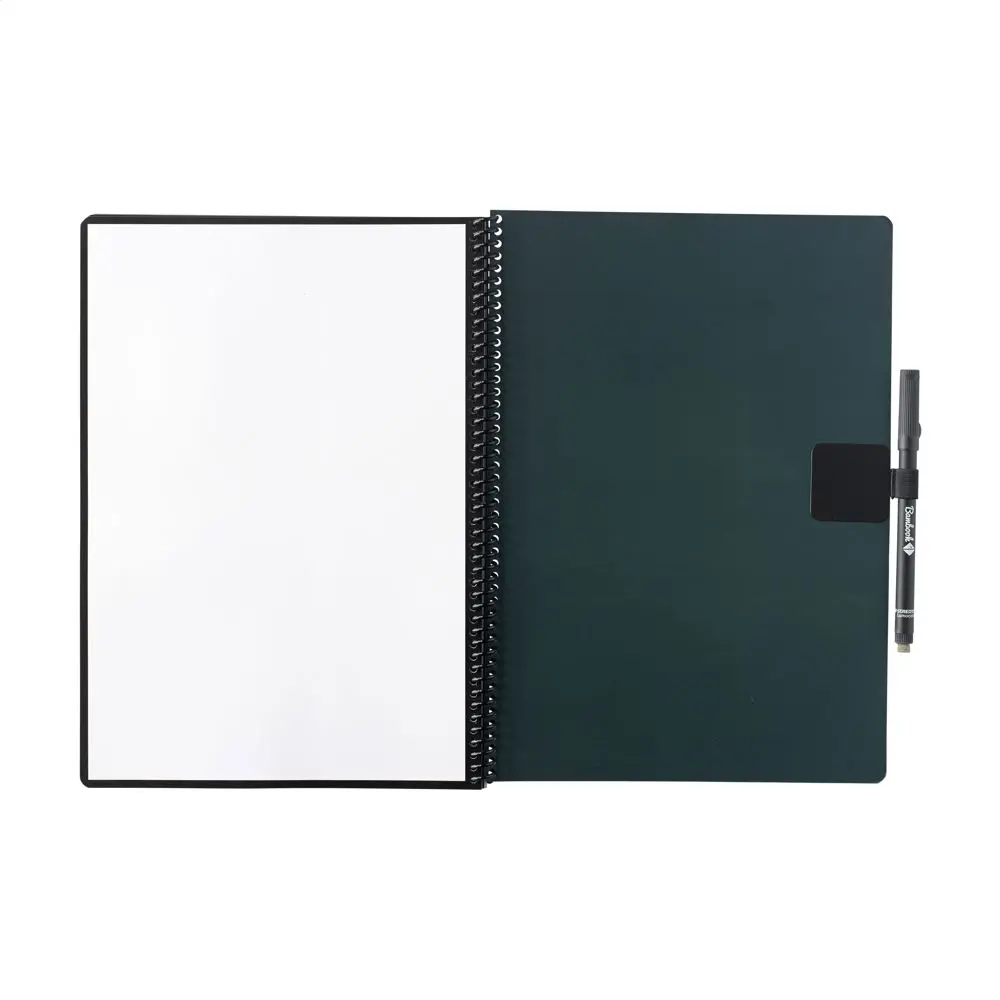 Ce carnet au format A4 propose 20 feuilles, soit 40 pages réutilisables. Écrivez facilement avec le marqueur spécial fourni, scannez vos notes via l'application dédiée, puis effacez-les d'un simple passage de chiffon humide. La reliure en spirale assure une robustesse optimale, tandis que la boucle pour stylo et l'effaceur intégré facilitent son utilisation quotidienne. Composé de carton et de plastique PP, il est conçu pour une longévité accrue.