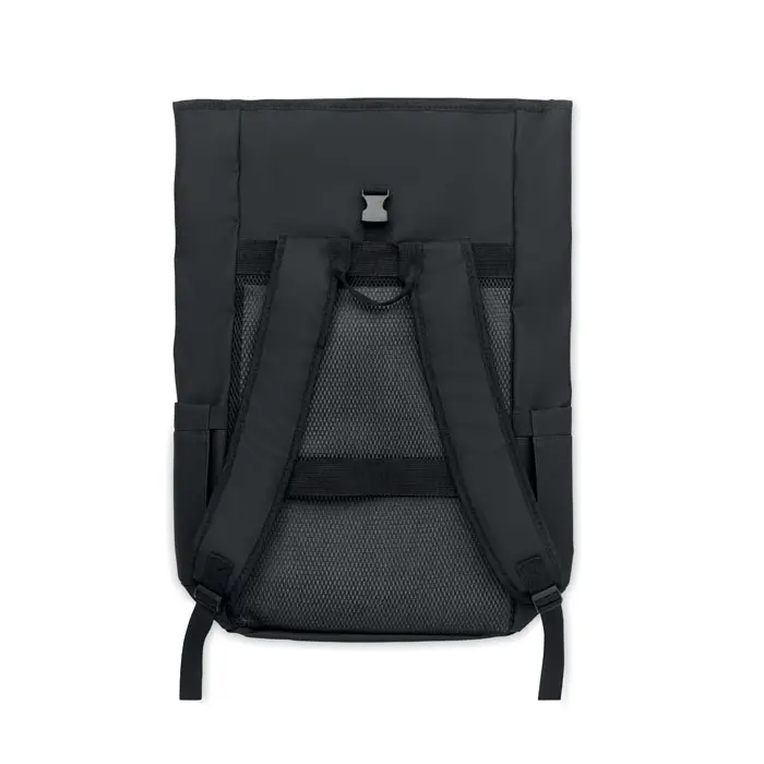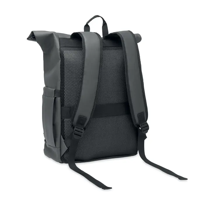Découvrez le sac à dos BANGKOK ROLL, idéal pour transporter votre ordinateur portable en toute sécurité. Fabriqué en polyester 600D RPET recyclé et PU, avec une doublure en polyester RPET, ce modèle allie durabilité et respect de l'environnement. Le dos renforcé en maille offre un confort optimal lors des déplacements, tandis que la poche zippée et la sangle pour trolley facilitent le transport. Les bandoulières renforcées avec finition intérieure en maille assurent un port agréable.