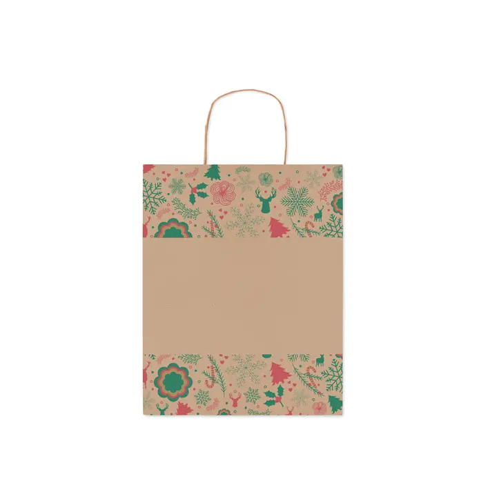 Découvrez notre sac en papier cadeau de taille moyenne, idéal pour emballer vos présents de fin d'année. Fabriqué à partir de papier recyclé à 50 %, il allie praticité et respect de l'environnement, avec une densité de 90 gr/m² pour une solidité optimale.