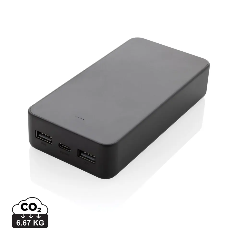 Personnalisez cette powerbank avec votre logo pour un impact marketing maximal lors d'événements ou comme cadeau client. Sa robustesse et sa capacité élevée la rendent parfaite pour garder vos partenaires connectés, renforçant ainsi l'image de votre entreprise responsable et innovante. Sans PVC, avec un câble de recharge en TPE recyclé RCS inclus, et emballée dans un emballage FSC® mix, elle s'aligne sur les valeurs durables de vos campagnes.
