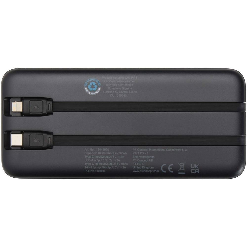 Batterie de secours Adhil de 10 000 mAh et 10 W recyclé avec 2 câbles intégrés