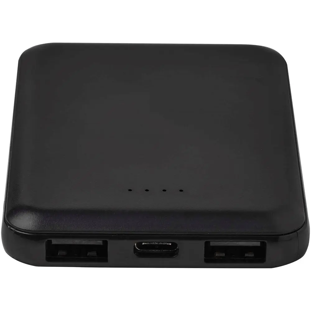 Découvrez cette batterie de secours au design fin et élégant, idéale pour les professionnels en quête de solutions promotionnelles durables. Avec son port d'entrée/sortie type-C et deux ports USB-A, elle permet de recharger simultanément jusqu'à trois appareils, garantissant une connectivité optimale lors d'événements ou en déplacement. Fabriquée à 23 % de plastique recyclé certifié RCS, elle allie fonctionnalité et engagement écologique, parfait pour renforcer l'image responsable de votre marque.