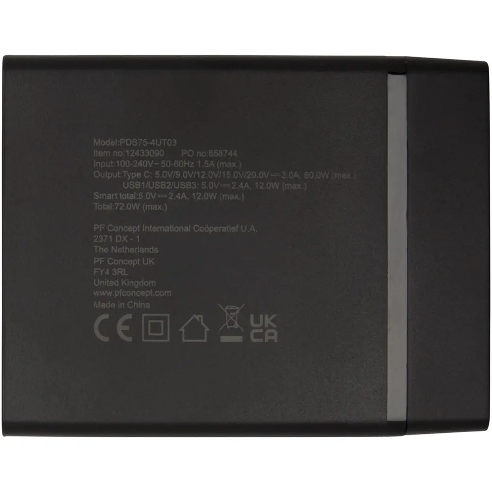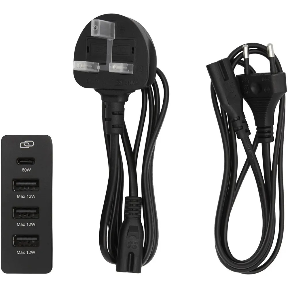 Avec ses 3 ports USB-A (5 V/2,4 A chacun) et un port USB-C polyvalent (jusqu'à 60 W : 5 V/3 A, 9 V/3 A, 12 V/3 A, 15 V/3 A, 20 V/3 A), elle permet une charge rapide et simultanée de plusieurs appareils, comme smartphones et tablettes. La combinaison USB-C et USB-A atteint 72 W pour une efficacité optimale.