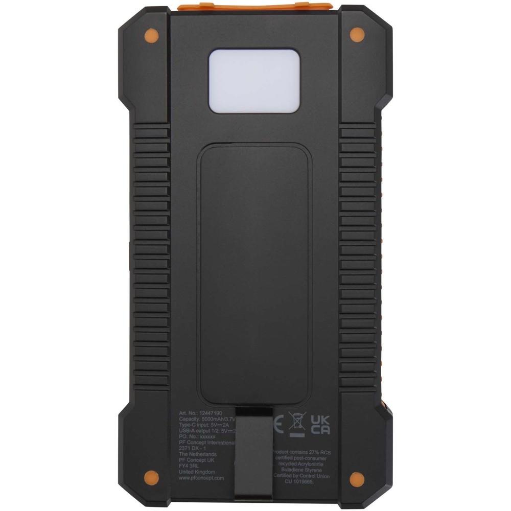 Offrez à vos clients un batterie de secours solaire durable et écologique, fabriquée en plastique recyclé. Parfaite pour les relations clients et événements professionnels, cette powerbank de 5000 mAh et 10 W se personnalise facilement avec votre logo pour une promotion impactante.