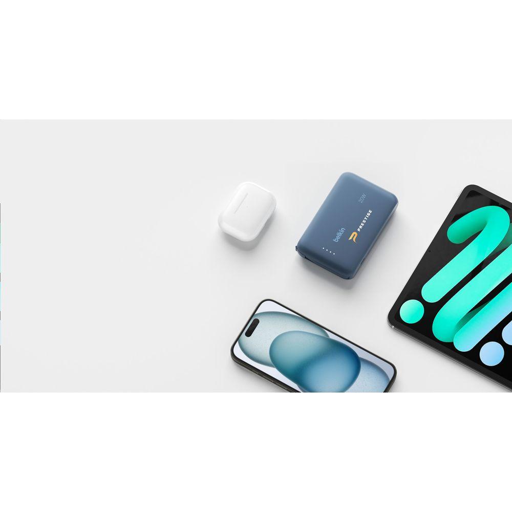 Découvrez la powerbank Belkin BoostCharge 10K, idéale pour les entreprises et organisateurs d'événements cherchant des cadeaux relationnels personnalisables avec impression logo. Ce modèle durable, composé à 72% de matériaux recyclés, se distingue par son emballage 100% sans plastique et sa fabrication en plastique recyclé post-consommation.