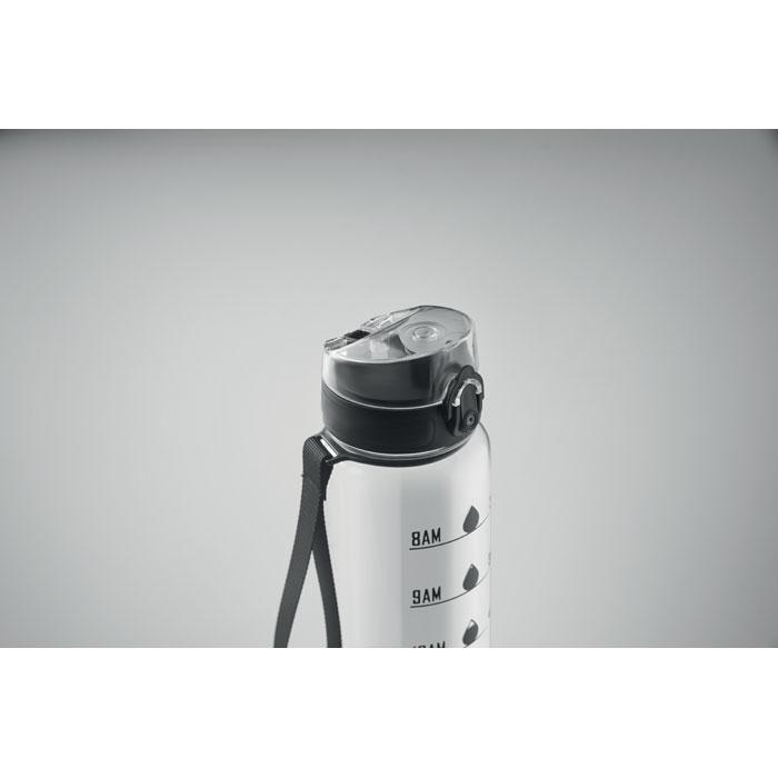 Ses marqueurs de temps motivants encouragent une consommation régulière d'eau, favorisant le bien-être de vos clients et collaborateurs. Le couvercle à ouverture d'une seule main, la fermeture de sécurité et la sangle de transport assurent une utilisation pratique et sans risque, avec une étanchéité parfaite anti-fuite.