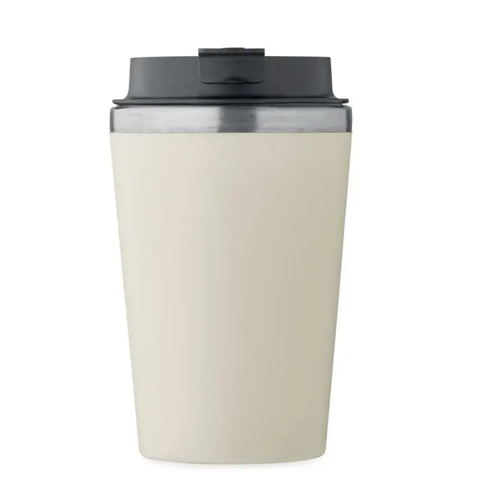 Découvrez le BLERM - Gobelet en céramique 350 ml, l'accessoire promotionnel idéal pour vos événements et campagnes marketing. Doté d'une double paroi avec extérieur en PP et intérieur en acier inoxydable recyclé (90 % recyclé), il offre une isolation optimale pour conserver la chaleur ou le froid de vos boissons. Son revêtement en céramique assure un goût pur et neutre, sans altération des saveurs.