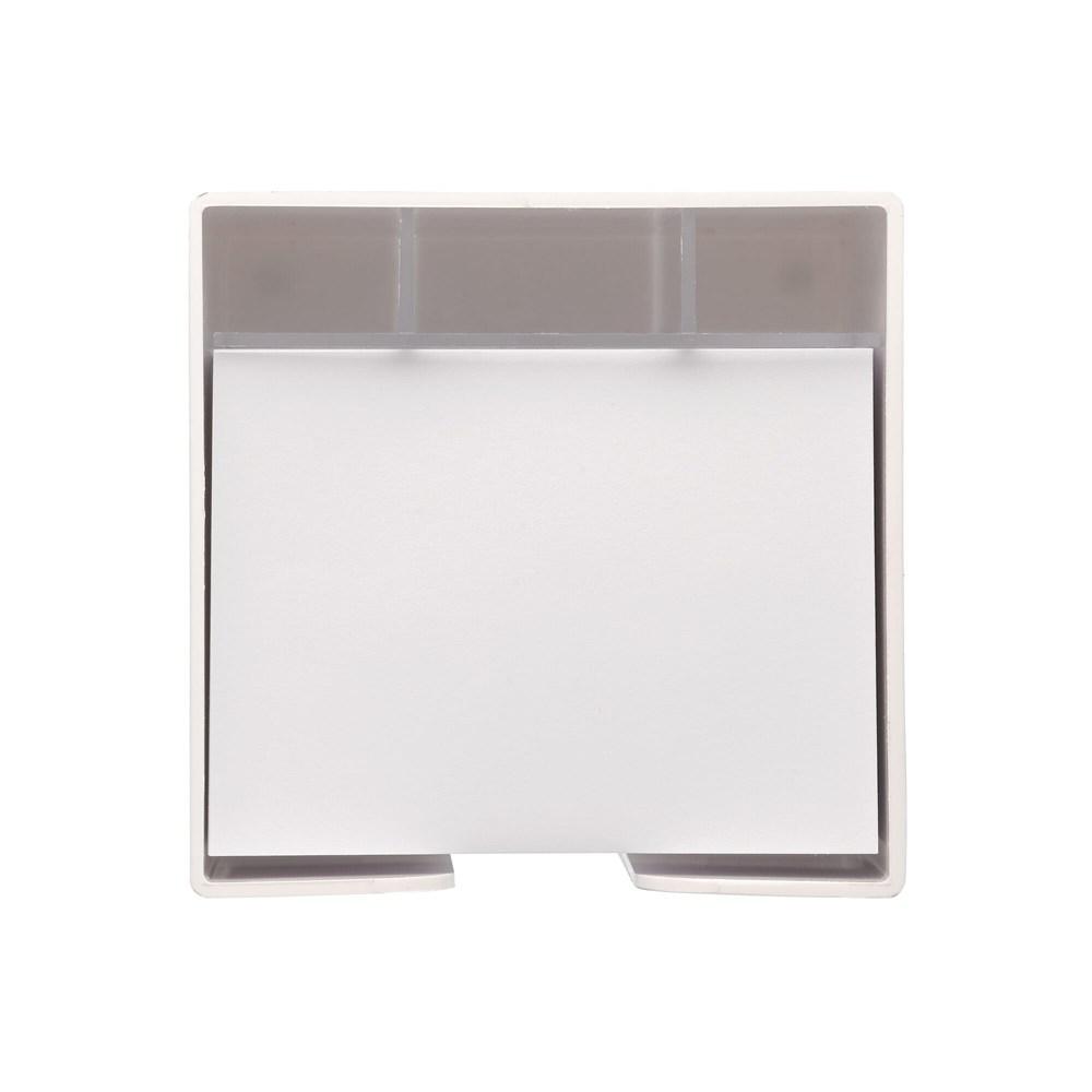 Ce bloc-notes en papier blanc format 10x10x10 cm, présenté dans une boîte cubique innovante, offre quatre compartiments transparents pratiques pour ranger stylos, trombones et autres accessoires de bureau. Avec environ 800 feuilles, il garantit une utilisation prolongée et intensive.