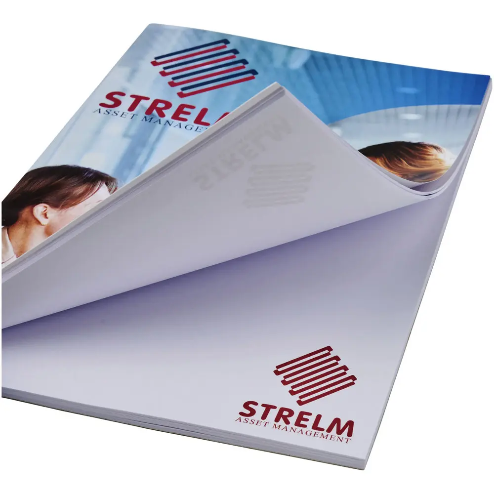 Personnalisez chaque feuille et la couverture avec votre logo pour une visibilité optimale auprès de vos clients. Disponible en trois épaisseurs (25, 50 ou 100 feuilles), il s'adapte à tous vos besoins en cadeaux promotionnels.