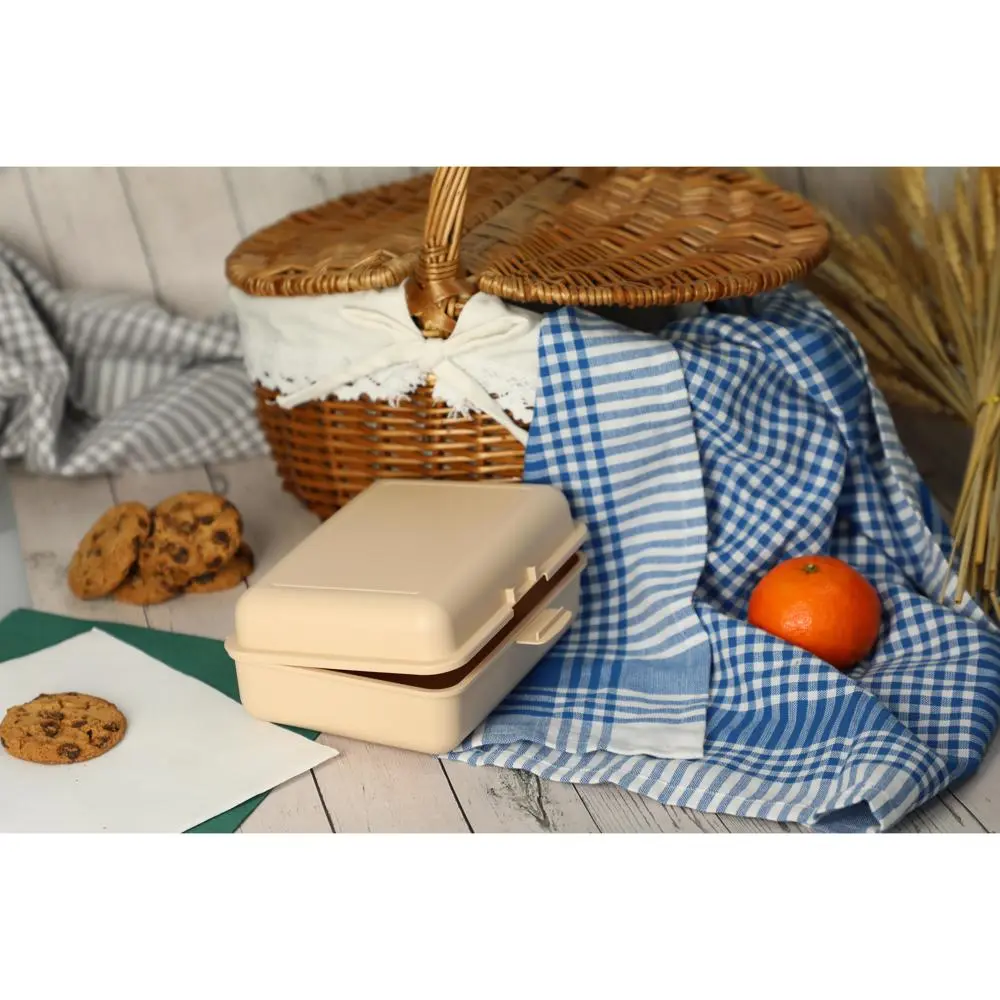 Fabriquée en bioplastique issu d'amidon naturel de canne à sucre, cette boîte allie robustesse et engagement écologique. Réutilisable à l'infini, elle réduit les déchets plastiques traditionnels et renforce l'image verte de votre marque auprès de vos clients.