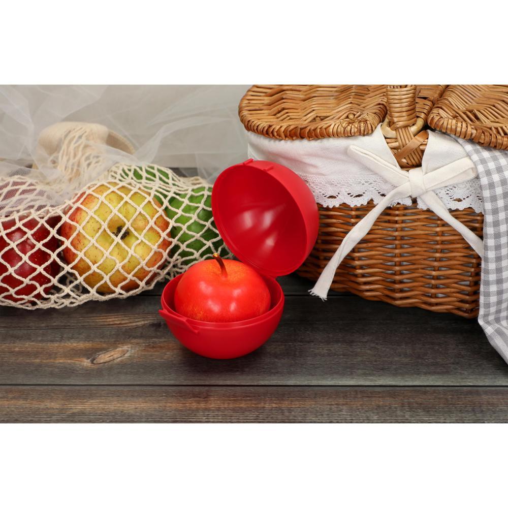 Découvrez la Boîte à déjeuner "Apfel-Box" réutilisable, une solution idéale pour conserver une pomme en toute sécurité grâce à sa forme ronde et sa fermeture clipsable résistante aux chocs. Avec un diamètre de 95 mm, elle s'adapte parfaitement aux besoins des événements professionnels et des campagnes marketing.