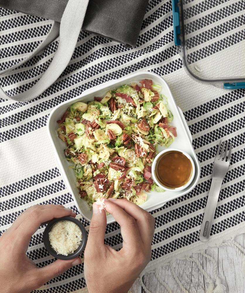 - Compartiments intelligents : Récipient intérieur spacieux, pot à sauce étanche et zone dédiée aux garnitures dans le couvercle, pour des repas équilibrés et sans mélange.