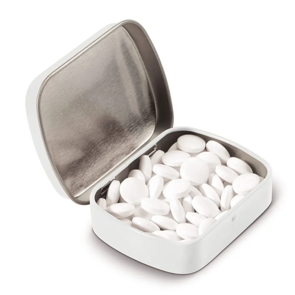 Découvrez notre boîte carrée en métal élégante, idéale pour des cadeaux promotionnels personnalisés. Remplie de 23 g de menthes hollandaises rafraîchissantes, elle offre un petit plaisir sucré qui laisse une impression durable auprès de vos clients et partenaires.