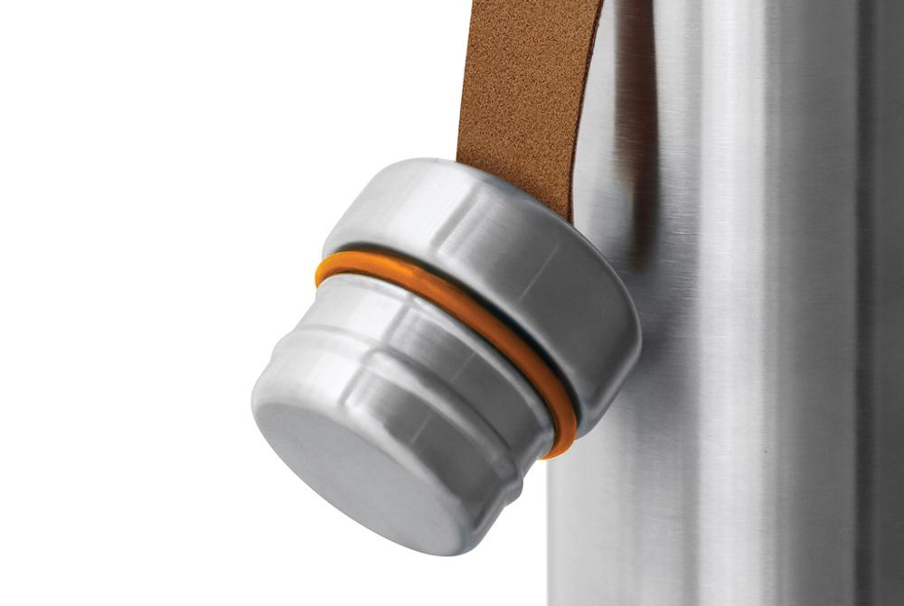Le couvercle en acier inoxydable évite tout contact avec le plastique, pour une utilisation saine et écologique. La dragonne en cuir artificiel facilite le transport et ajoute une touche esthétique raffinée, renforçant l'image de marque de votre entreprise.