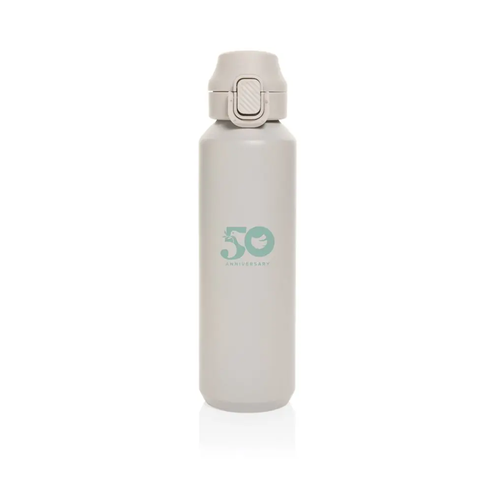 Découvrez cette bouteille d'eau pratique et écologique, idéale pour hydrater vos équipes ou offrir comme cadeau promotionnel lors d'événements. Fabriquée en acier inoxydable recyclé avec un couvercle en PP, elle offre une solution durable pour les entreprises soucieuses de leur impact environnemental.