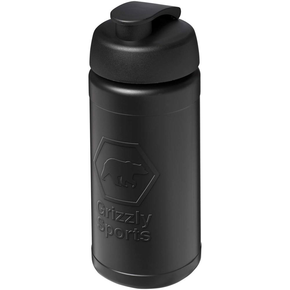 Découvrez la bouteille de sport Baseline Rise de 500 ml recyclée avec couvercle rabattable, idéale pour personnaliser avec votre logo en relief moulé directement dans le matériau. Cet effet tactile renforce l'impact de votre marque, favorisant une mémorisation durable chez vos clients lors d'événements ou de campagnes promotionnelles.