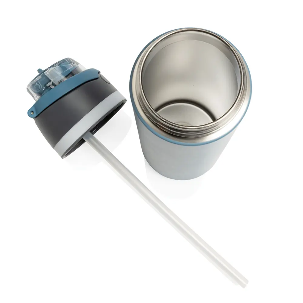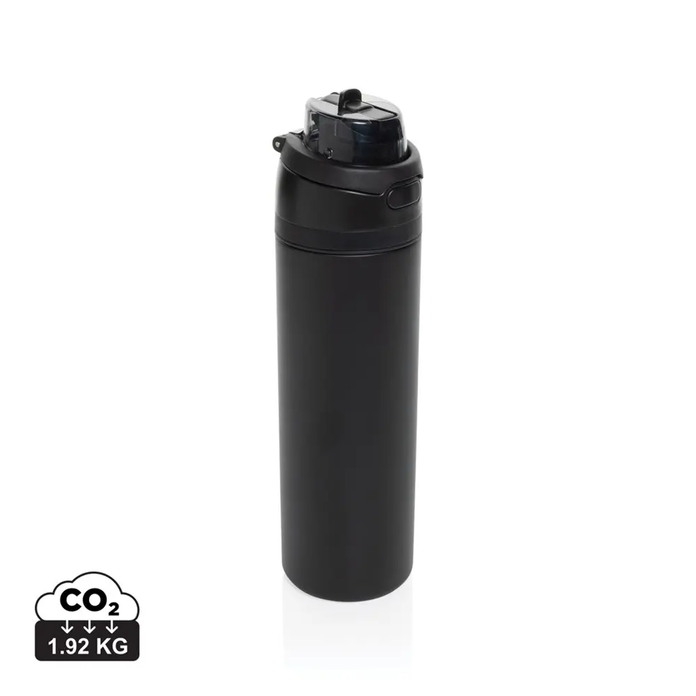Le système d'ouverture simplifié par un simple appui sur le bouton garantit une utilisation intuitive. Verrouillez facilement pour une étanchéité parfaite, protégeant contre les saletés et germes. Entièrement étanche, elle conserve vos boissons au frais jusqu'à 15 heures ou au chaud pendant 5 heures, idéal pour des journées actives. Fabriquée en acier inoxydable recyclé certifié RCS et sans BPA, elle respecte les normes de sécurité alimentaire européennes, assurant une qualité premium pour vos distributions promotionnelles.