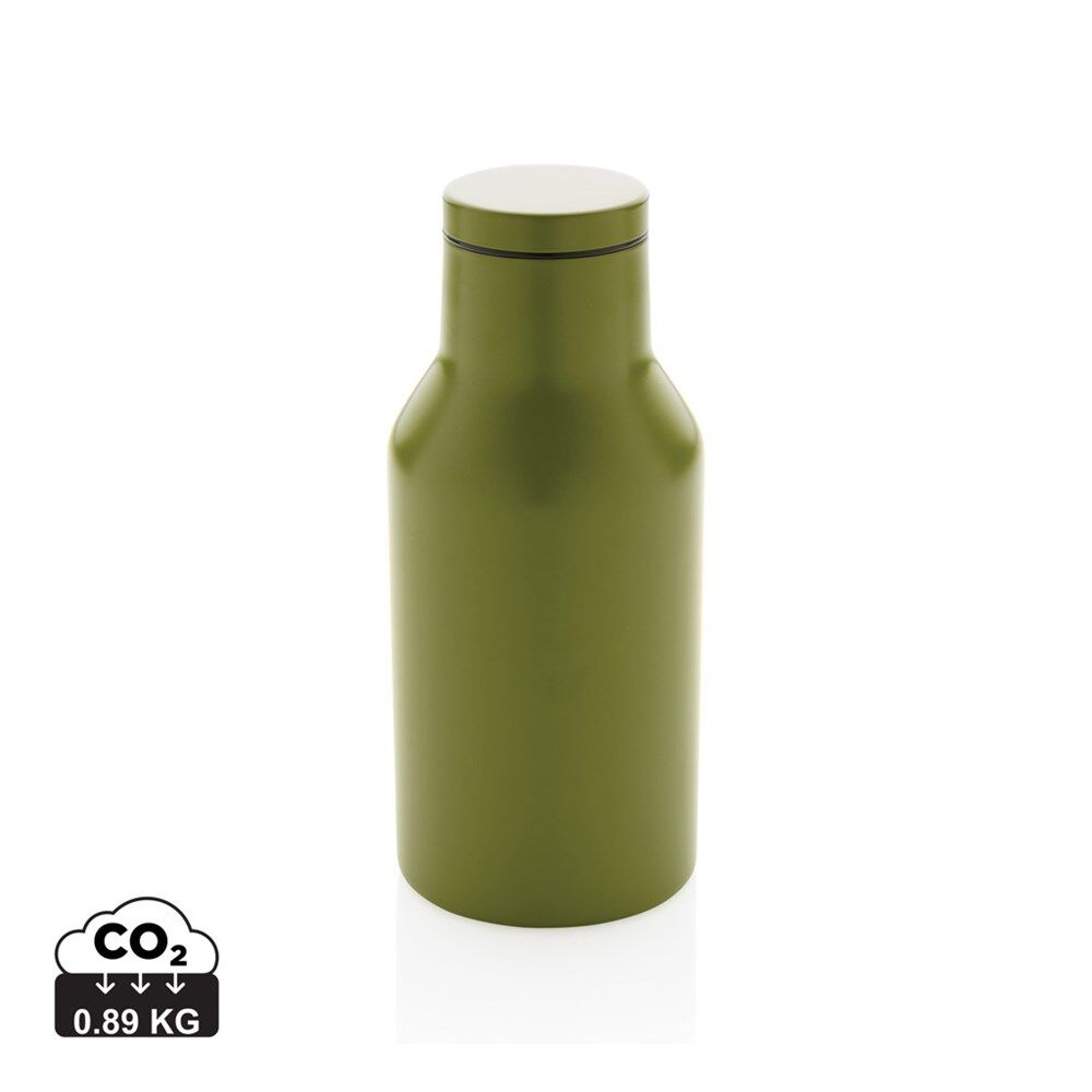 Découvrez notre bouteille isotherme compacte de 300 ml en acier inoxydable recyclé, idéale pour les entreprises soucieuses de l'environnement. Certifiée RCS, elle intègre 89 % de contenu recyclé, garantissant une chaîne d'approvisionnement durable et éco-responsable. Sans BPA et conforme aux normes de sécurité alimentaire, elle offre une isolation performante : 3 heures pour les boissons chaudes, 6 heures pour les froides.