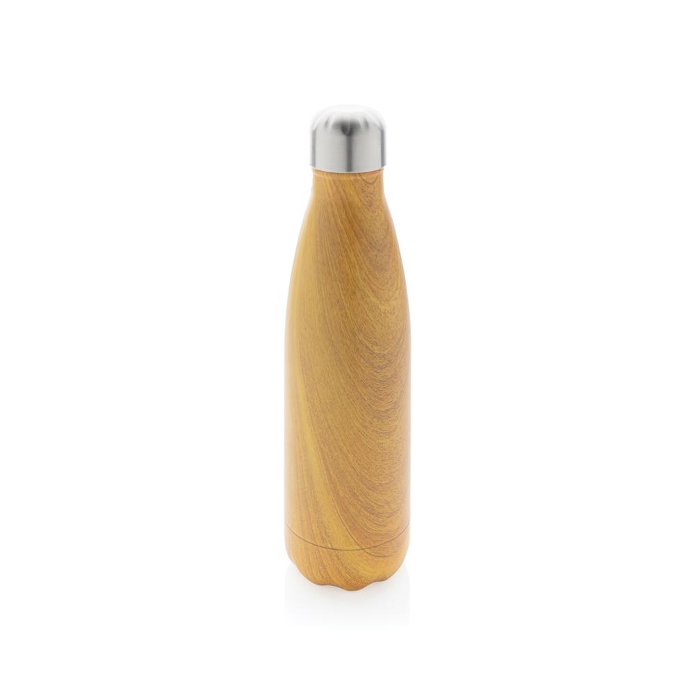 Découvrez notre bouteille isotherme avec effet bois de 500 ml en acier inoxydable, équipée d'un vide d'air innovant qui conserve vos boissons chaudes jusqu'à 5 heures et froides jusqu'à 15 heures. Son design imitation bois élégant sur le corps attire tous les regards et renforce l'image premium de votre marque.