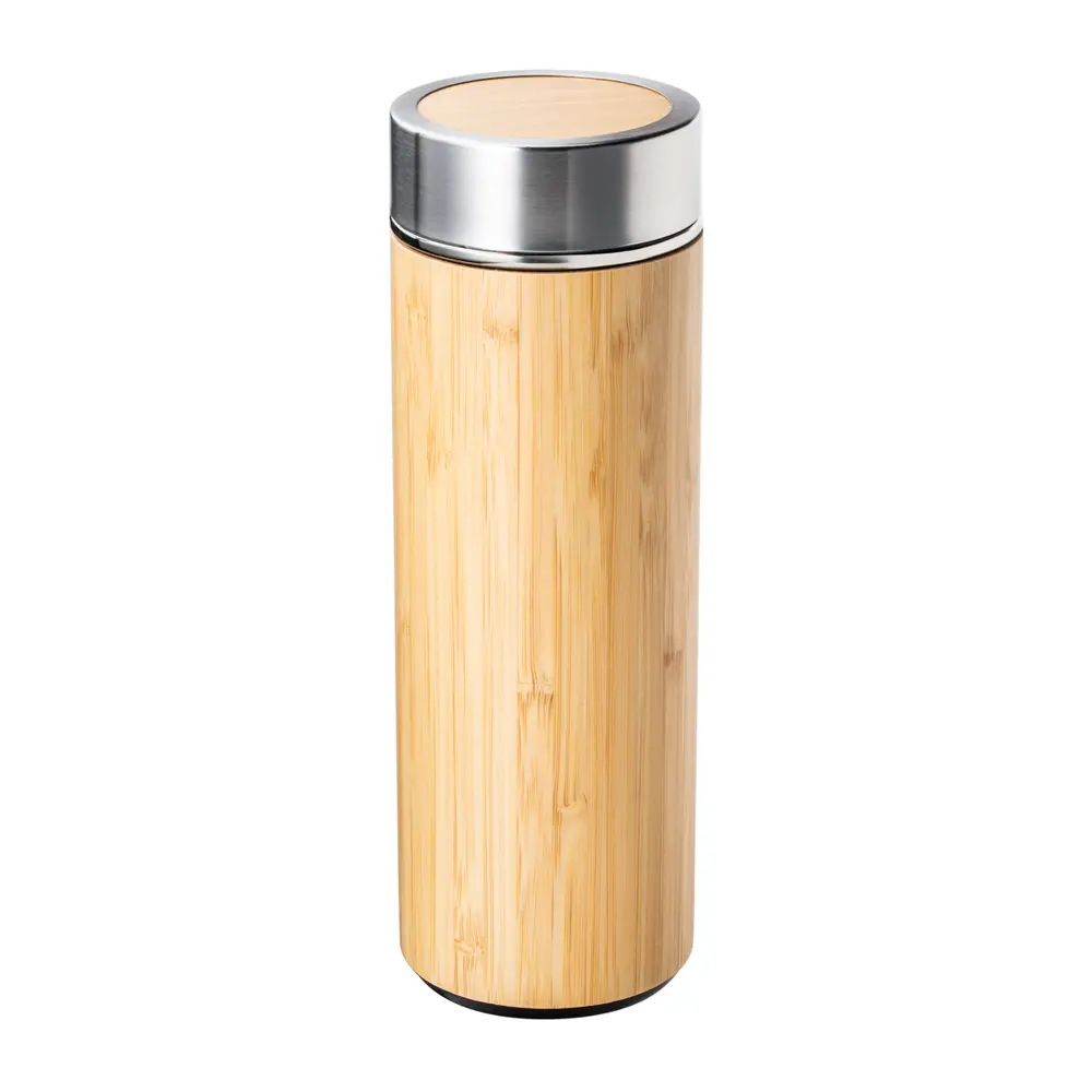 Découvrez cette bouteille isotherme élégante et écologique, conçue pour les entreprises soucieuses de leur image durable. Fabriquée en bambou naturel et en acier inoxydable, elle intègre un filtre à thé pratique pour infuser directement vos boissons préférées. Avec une capacité de 360 ml et une isolation double paroi sous vide, elle maintient vos thés ou infusions chaudes pendant des heures, tout en étant étanche et robuste pour un usage quotidien intensif.