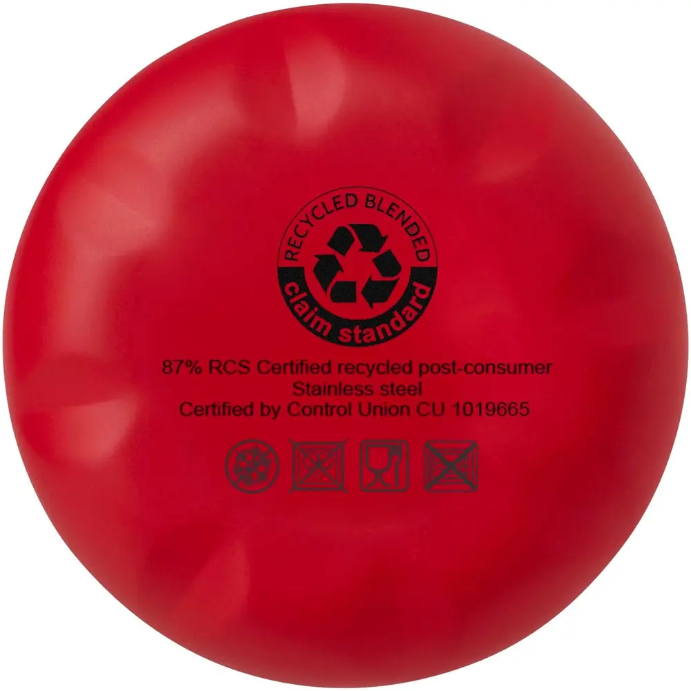 Matériaux durables : acier inoxydable recyclé et plastique PP recyclé. Dimensions : 7,1 x 27 x 7,1 cm, Ø 7,1 cm. Un choix stratégique pour entreprises et organisateurs d'événements cherchant à combiner écologie et visibilité.