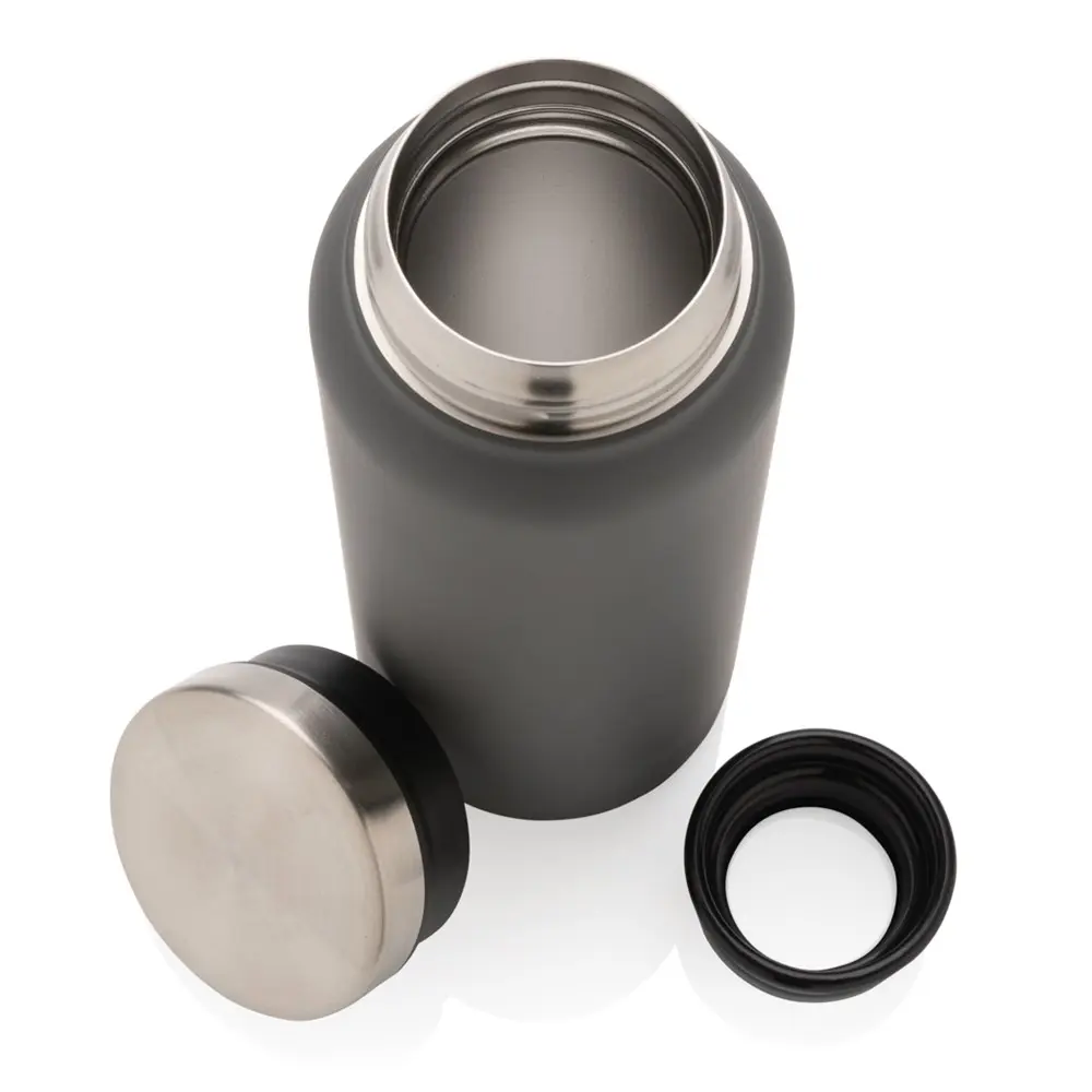 Sa capacité de 0,6 litre convient aux pauses café prolongées ou aux journées actives. Robuste et élégante, elle s'intègre parfaitement dans les kits d'accueil pour événements ou comme incentive pour vos équipes. Facile à transporter, elle encourage l'hydratation tout en affichant subtilement votre branding, transformant chaque utilisation en opportunité publicitaire.