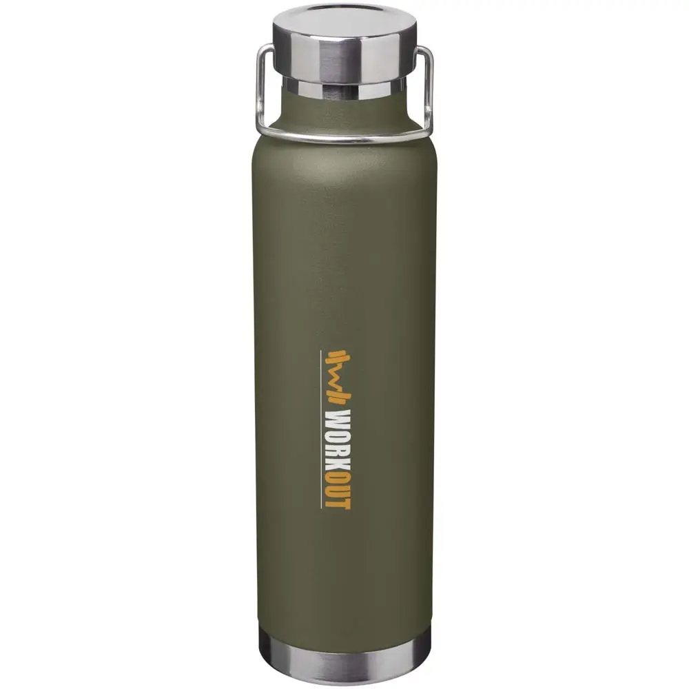 Découvrez la bouteille thermo cuivre-isolée Thor de 650 ml, un choix idéal pour vos campagnes marketing et événements. Fabriquée en acier inoxydable recyclé à double paroi avec isolation sous vide en cuivre, elle maintient vos boissons chaudes ou froides pendant des heures, garantissant une expérience premium pour vos clients.