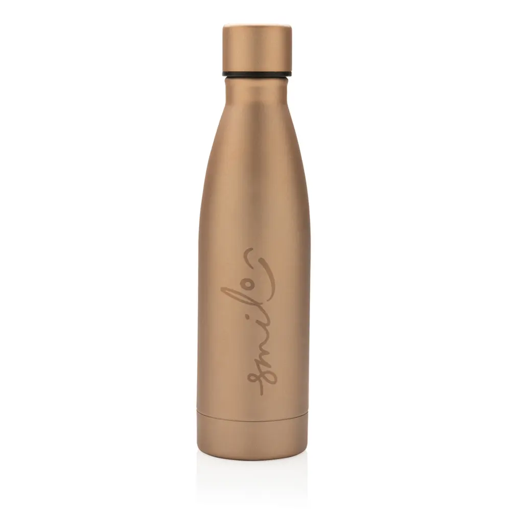 Découvrez cette bouteille isotherme de 500 ml, idéale pour les entreprises souhaitant offrir des cadeaux promotionnels durables et personnalisables. Fabriquée en acier inoxydable recyclé certifié RCS, elle combine praticité et engagement écologique, parfaite pour marquer les esprits lors d'événements ou de campagnes marketing.
