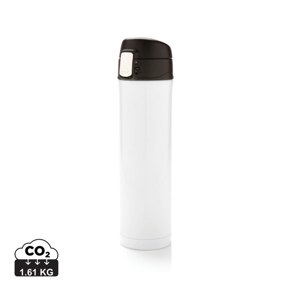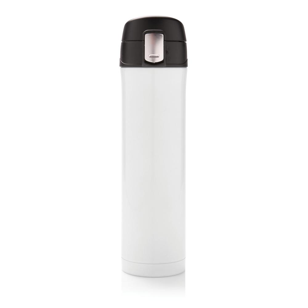 Découvrez notre Bouteille thermo verrouillage facile - 450 ml, l'accessoire promotionnel idéal pour vos événements et campagnes marketing. Fabriquée en acier inoxydable à double paroi, elle maintient les boissons chaudes jusqu'à 5 heures et fraîches jusqu'à 15 heures, garantissant une satisfaction optimale pour vos clients et partenaires.