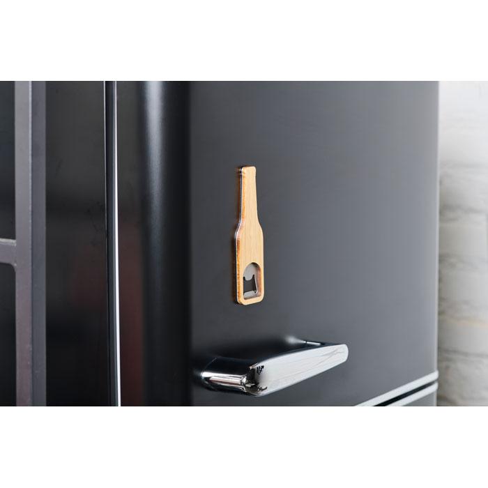 Ce décapsuleur aimanté adhère parfaitement à toute surface métallique, facilitant son rangement et son utilisation quotidienne. Offrez-le à vos clients lors d'événements ou comme cadeau relationnel : sa durabilité et son design écologique renforcent l'image de votre marque responsable.