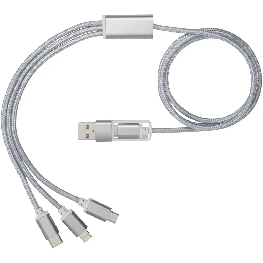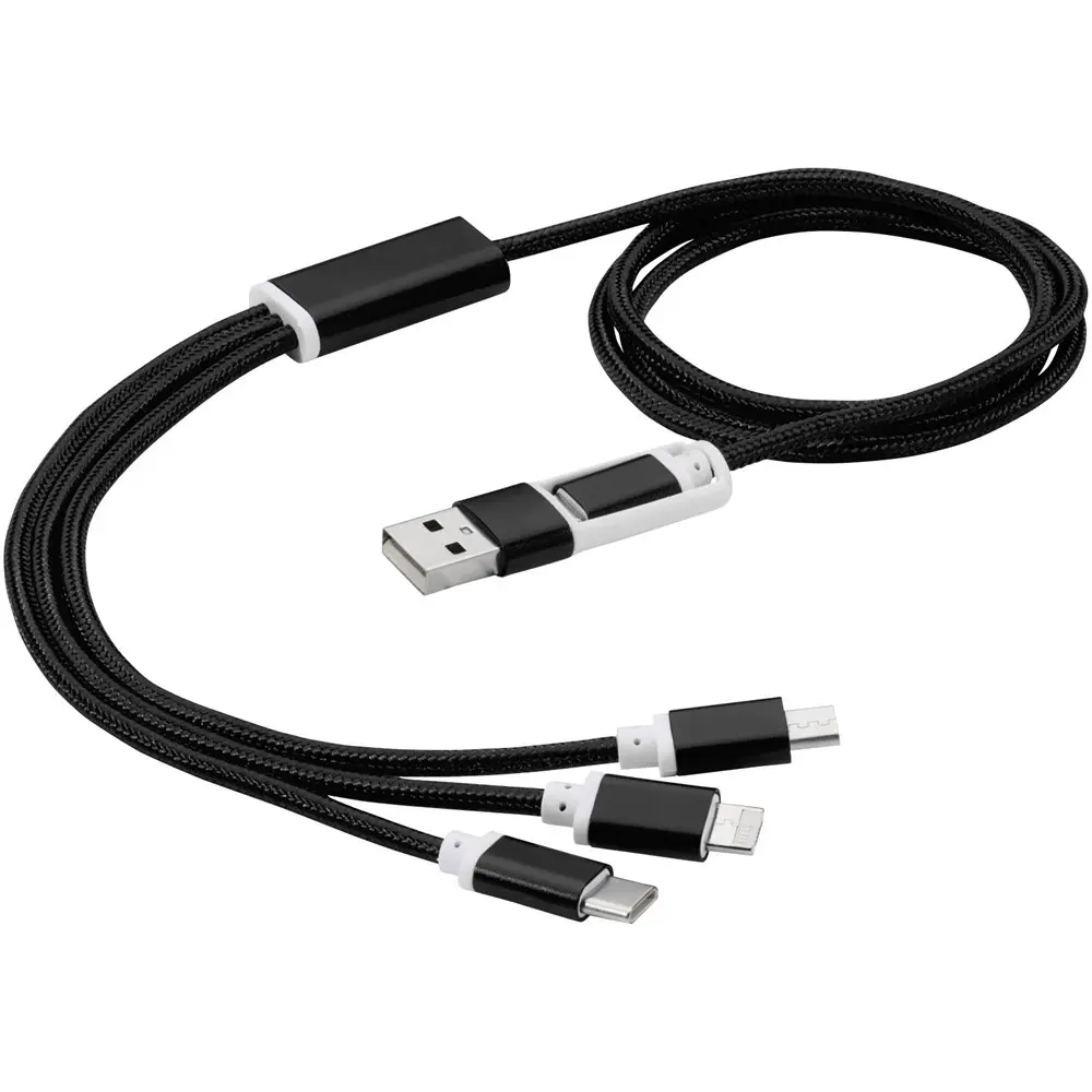 Découvrez notre câble de charge 5-en-1 Versatile, idéal pour les entreprises cherchant des cadeaux promotionnels personnalisables. Avec ses connecteurs polyvalents – entrée Type-C et USB-A, sorties Type-C, Apple® iOS et micro USB –, il s'adapte à tous les appareils, y compris les derniers smartphones et MacBook. Longueur pratique de 100 cm pour une utilisation nomade sans contrainte.