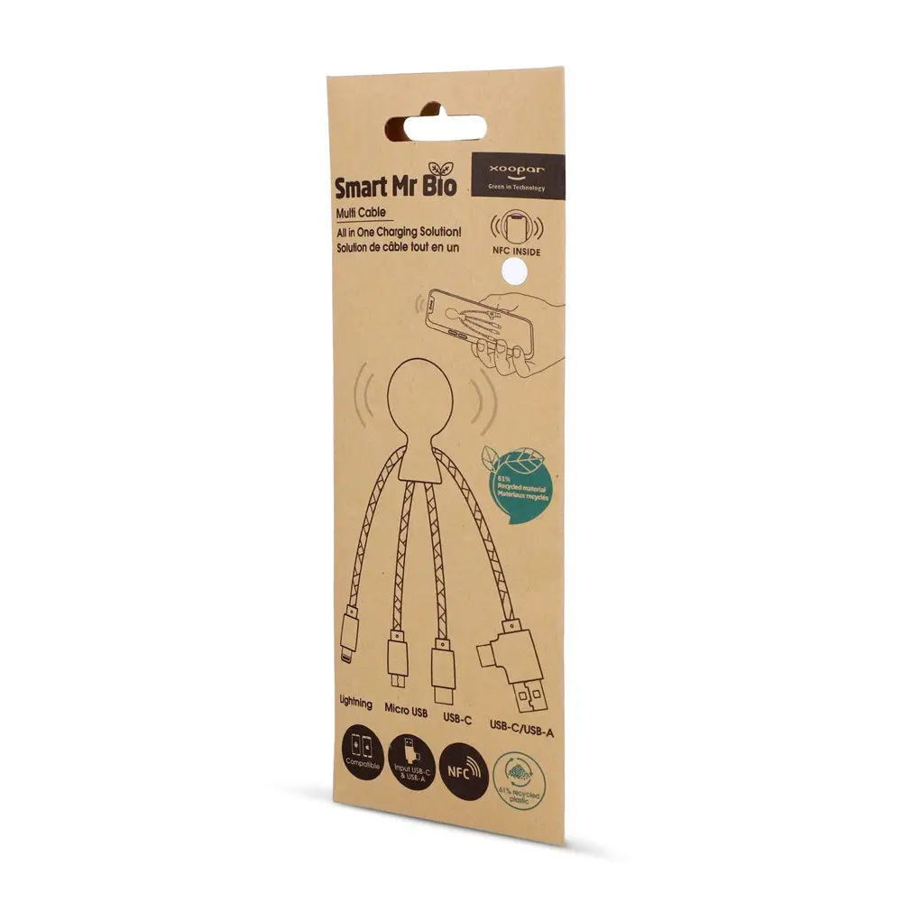 Découvrez le câble de recharge éco Mr. Bio intelligent NFC, un accessoire innovant pour vos campagnes marketing. Avec ses entrées doubles USB et USB-C, et ses trois connecteurs polyvalents, il charge tous vos appareils mobiles en un clin d'œil, idéal pour les événements professionnels ou les cadeaux clients.