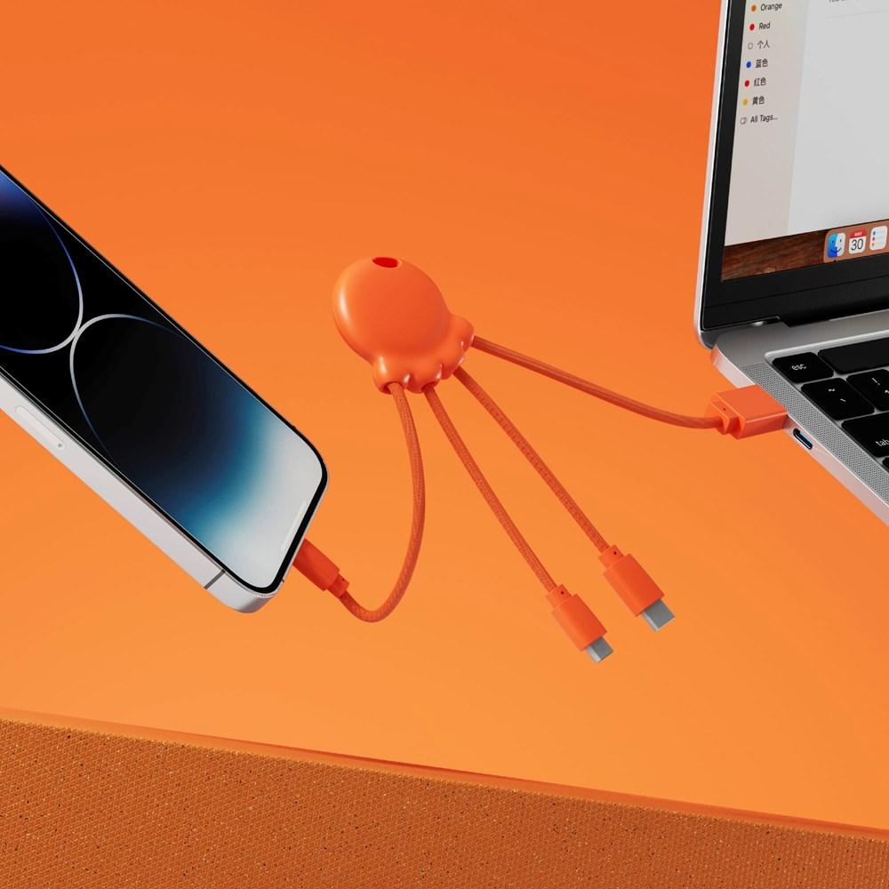Offrez un câble de recharge éco Octopus fabriqué en RPET pour les câbles et en plastique recyclé pour le corps, avec un total de 61 % de contenu recyclé basé sur le poids. Équipé d'un connecteur d'entrée USB et de trois sorties adaptées aux principaux appareils (smartphones, tablettes), il permet une charge polyvalente et responsable.