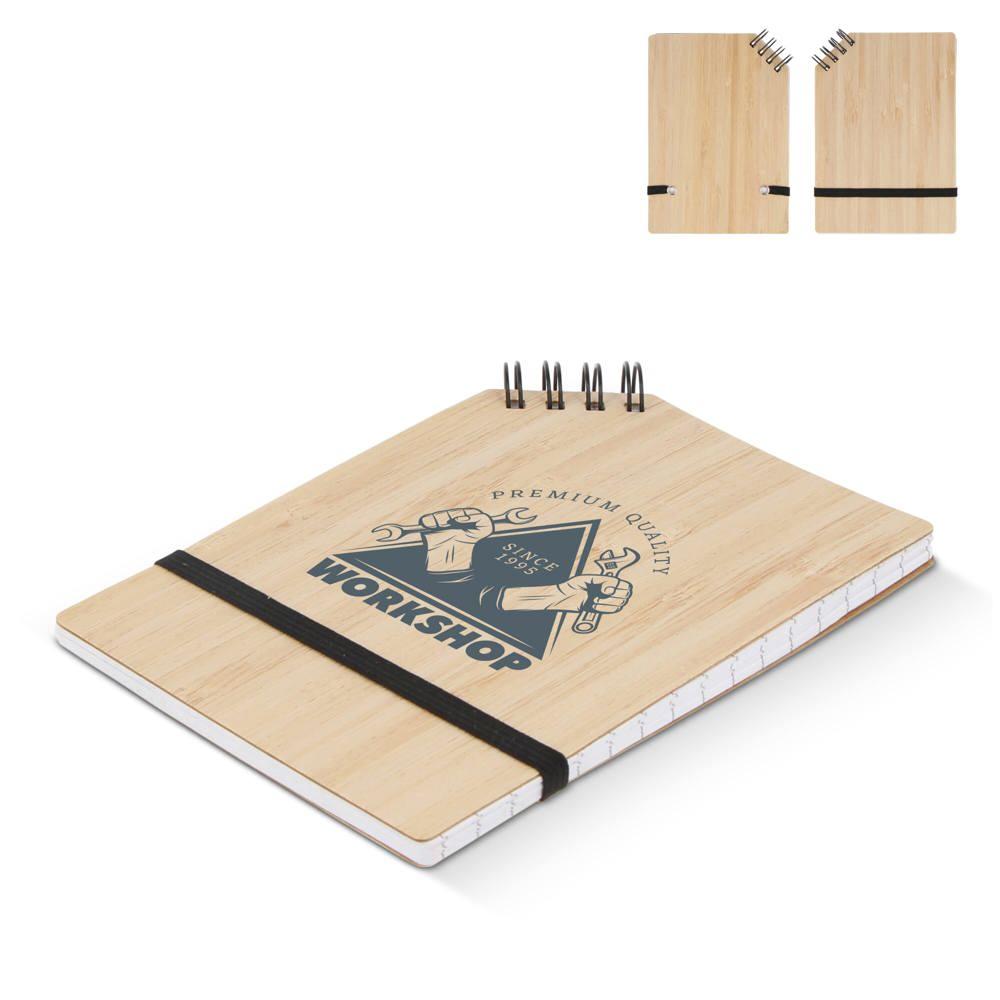 Optimisé pour SEO : carnet A6 bambou, cahier reliure d'angle personnalisé, goodies entreprise écologiques.
